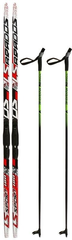 Комплект лыжный: пластиковые лыжи 180 см с насечкой, стеклопластиковые палки 140 см, крепления SNS «бренд ЦСТ Step», цвета микс информация: