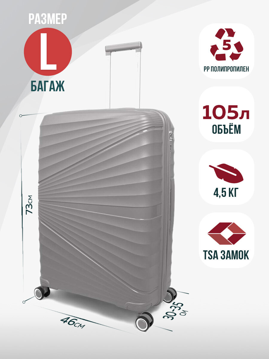 10 цен на Ударопрочный чемодан из полипропилена с расширением размер 9002L-светло-серый
