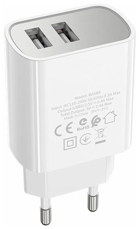 Отзывы на Сетевое зарядное устройство с кабелей для Lightning BOROFONE B A58A, 2.4A, два порта USB .
