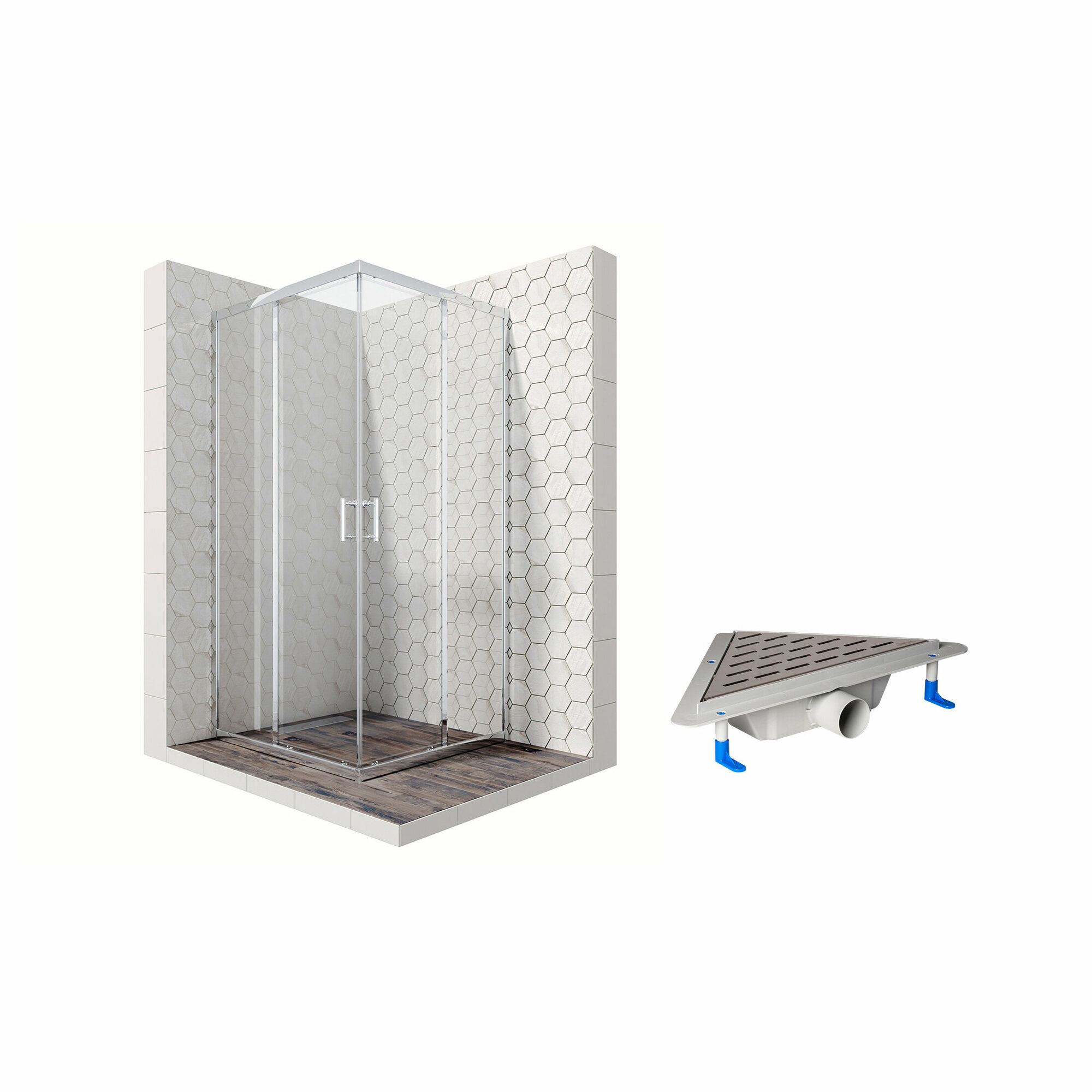 Отзывы на Душевой уголок 100х100 с трапом и раздвижными дверями Ambassador Kingston 14011103-ST18: душевое ограждение из стекла 6 мм, профиль хром