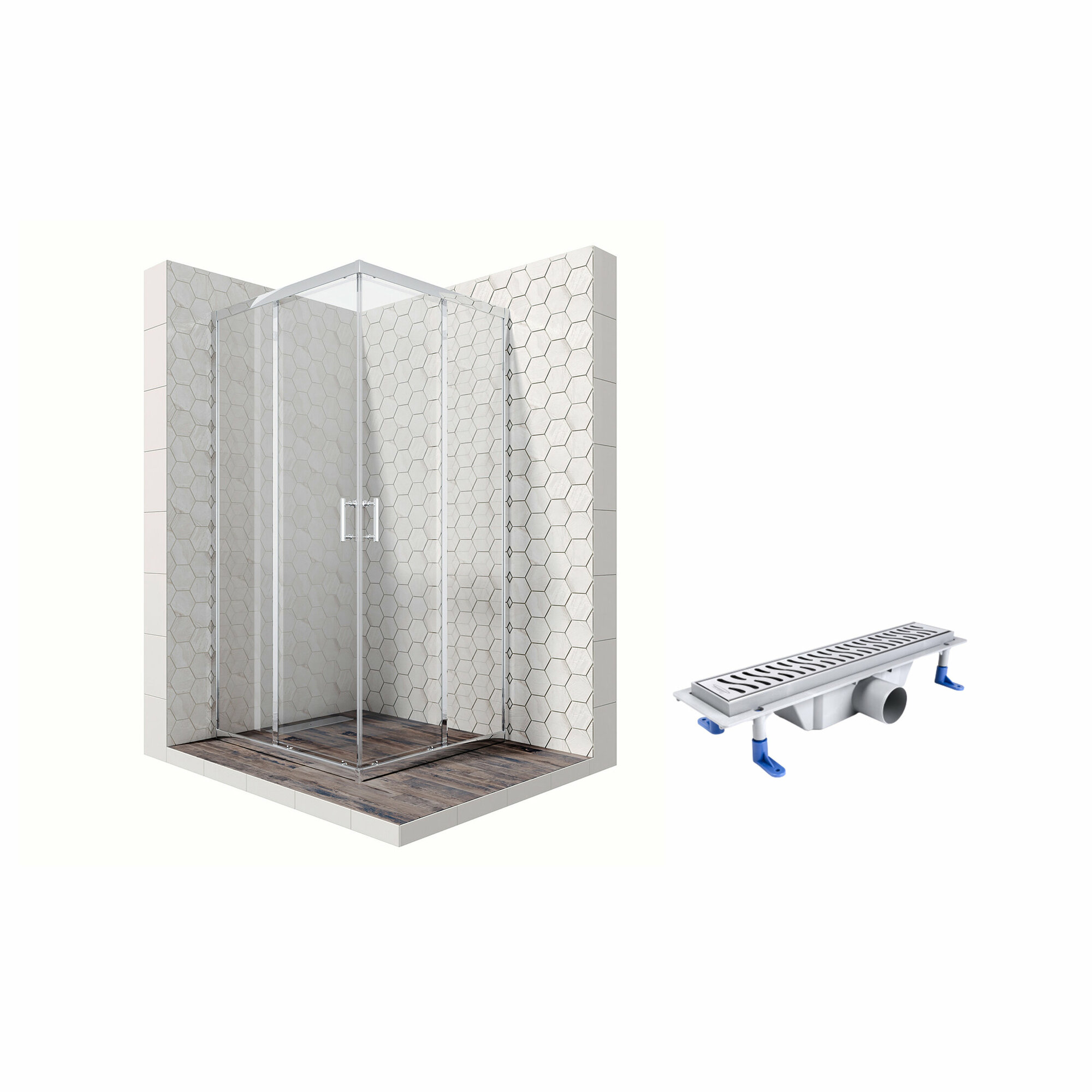 Отзывы на Душевой уголок 100х100 с трапом и раздвижными дверями Ambassador Kingston 14011103-ST3: душевое ограждение из стекла 6 мм, профиль хром