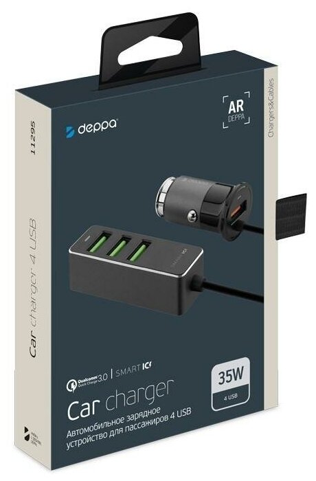 DEPPA Автомобильное зарядное устройство Deppa 11295 1 USB + 3 USB, QC 3.0, 7A, алюминий, графит информация: