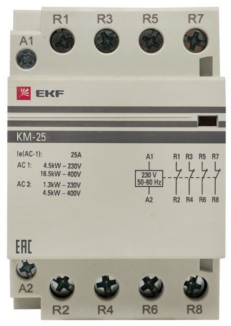 Контактор модульный EKF PROxima (km-3-25-04) 230-400 В 25 А тип AC 4Р 4 318 ₽