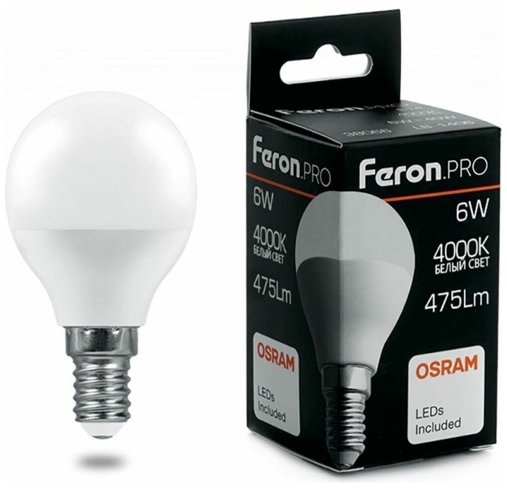 Отзывы на Лампочка светодиодная шар E14/G45 6Вт 475Лм белый нейтральный 4000К, 38066