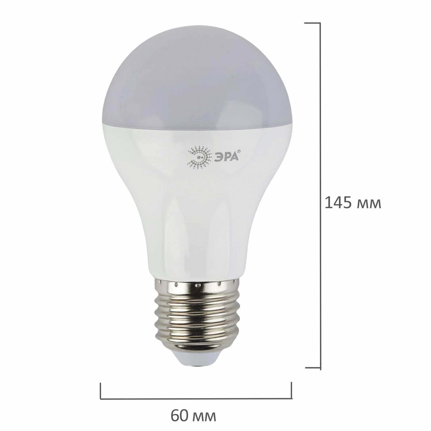 Лампа светодиодная ЭРА, 11 (100) Вт, цоколь E27, груша, теплый белый свет, 25000 ч., LED, smdA60-10w-827-E27, Б0020532 Комплект : 5 шт