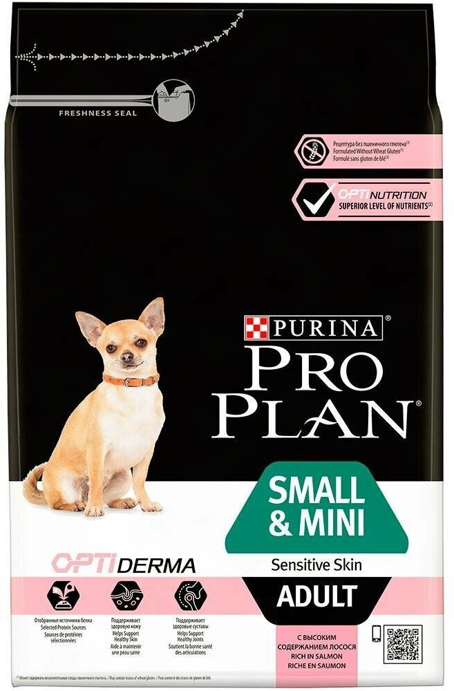 Корм для собак мелких и карликовых пород с чувствительной кожей Purina Pro Plan с лососем, 3 кг информация: