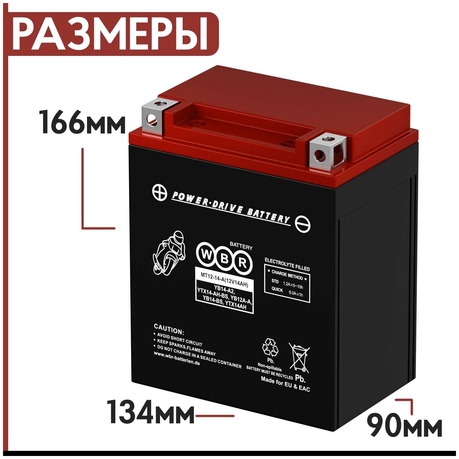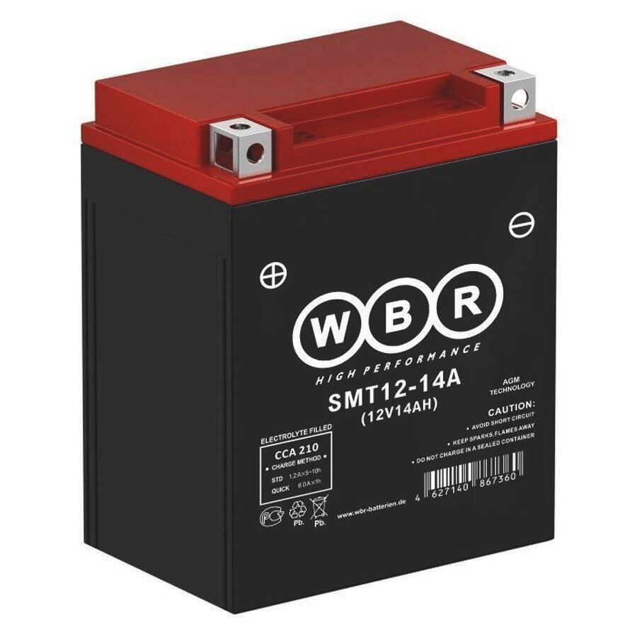 Аккумулятор WBR SMT 12-14-A для мототехники (12В, 14Ач / стартерный ток 210А) YB14-A2,YTX14AH-BS, YB12A-А информация: