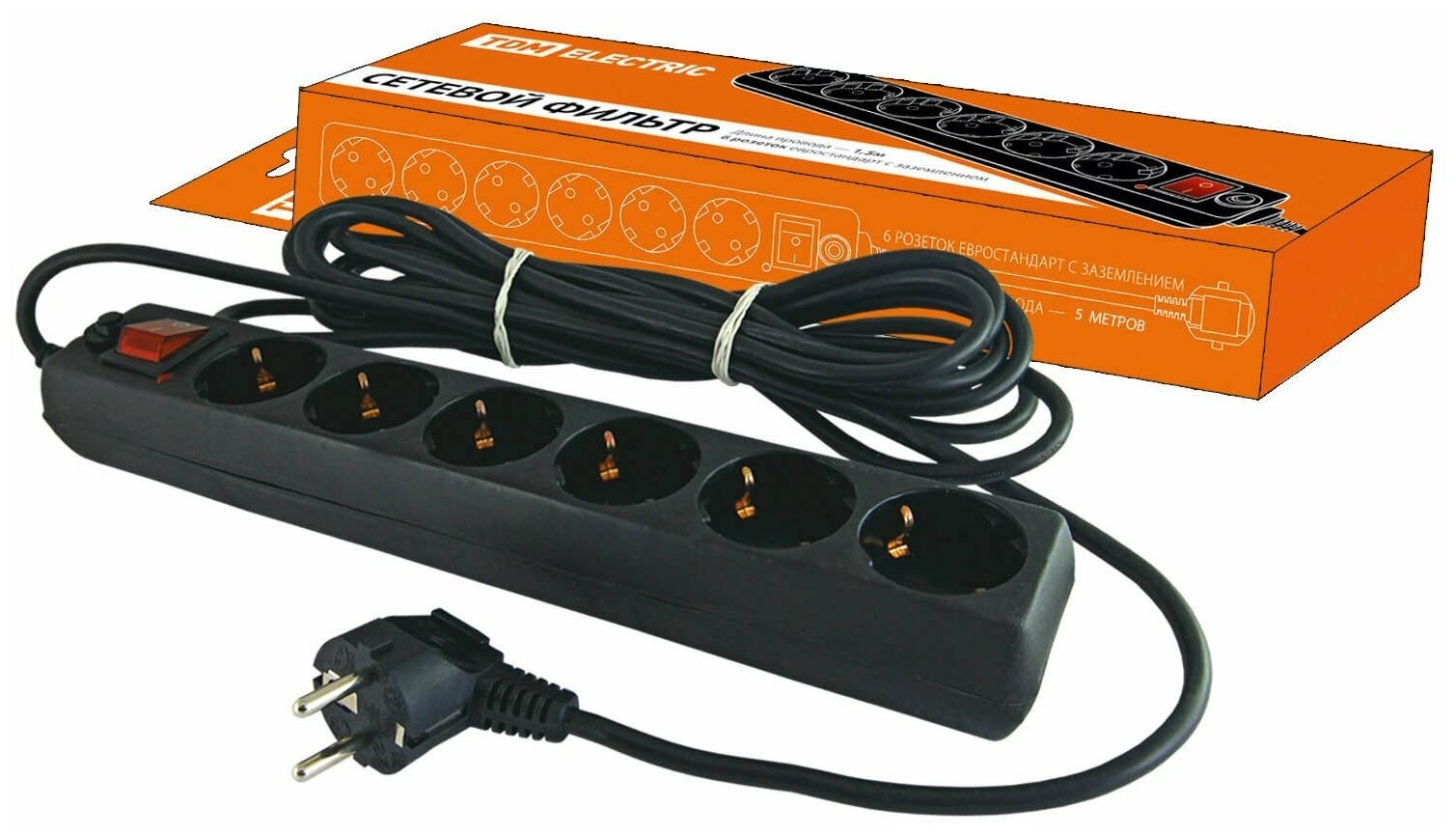 Отзывы на Сетевой фильтр TDM ELECTRIC SQ1304-0013, 6 розеток, с/з, 16А / 3500 Вт 5 м 6
