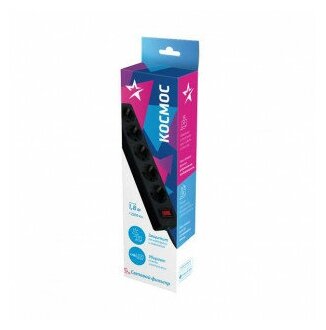 Сетевой фильтр Космос 1 8 м 5 розеток пвс 3х0 75мм2 черный