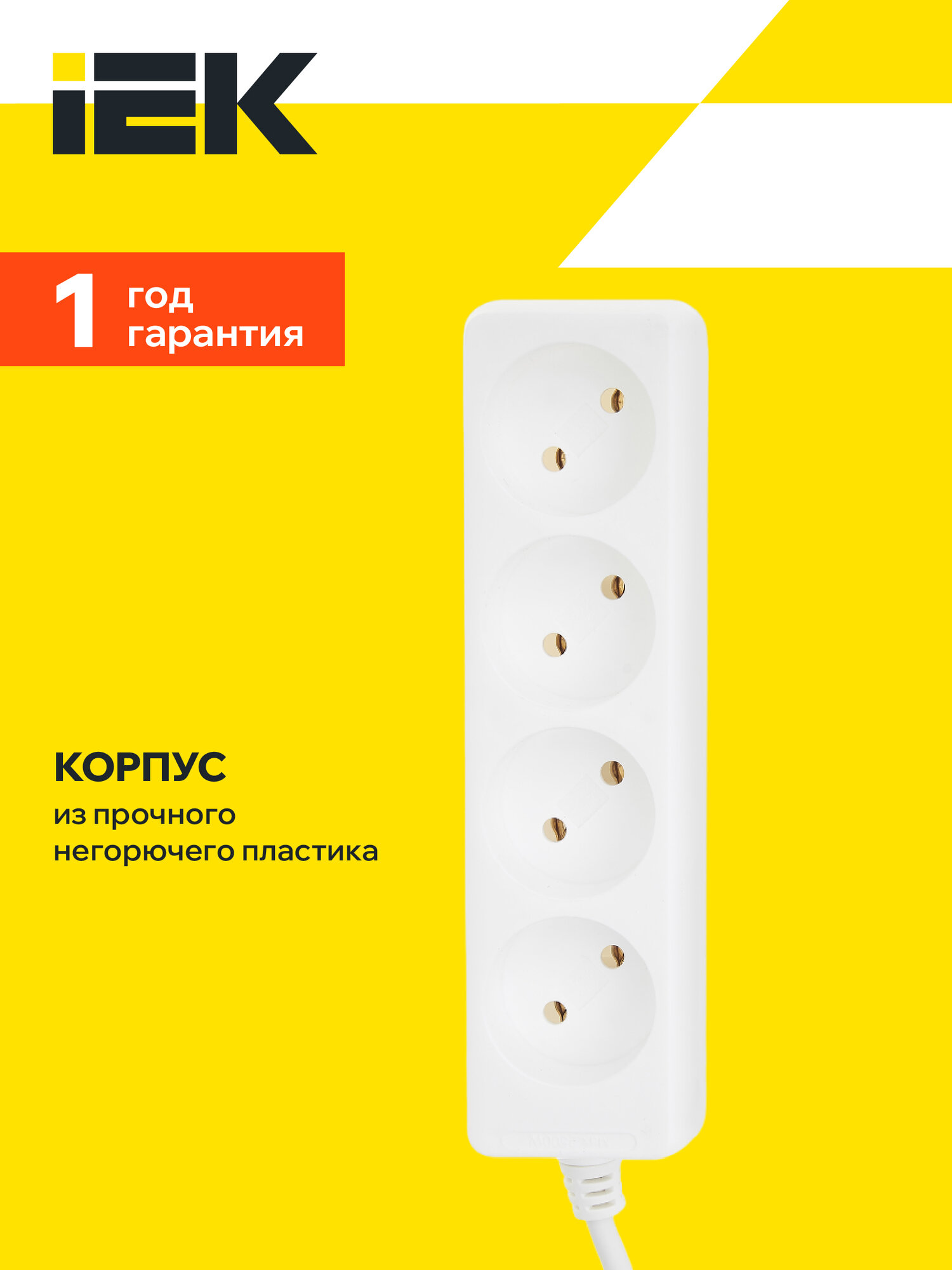 Удлинитель У4 4-местный, 5м, WYP10-06-04-05-N | код. WYP10-06-04-05-N | IEK ( 1шт. ) 1 157 ₽