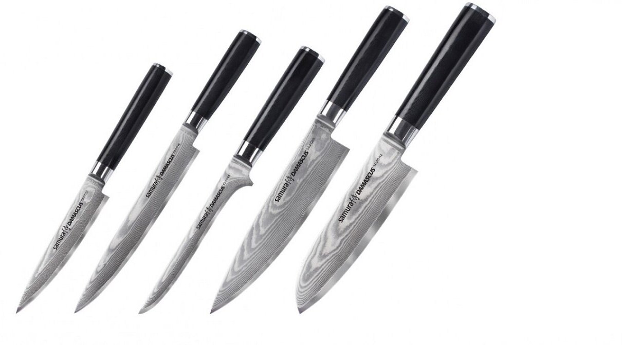 Отзывы на KSD-6C/G-10,пукч Набор из 5-ти кухонных ножей Samura Damascus универсальный, слайсер, обвалочный, шеф, сантоку и подставки универсальной квадратной черной