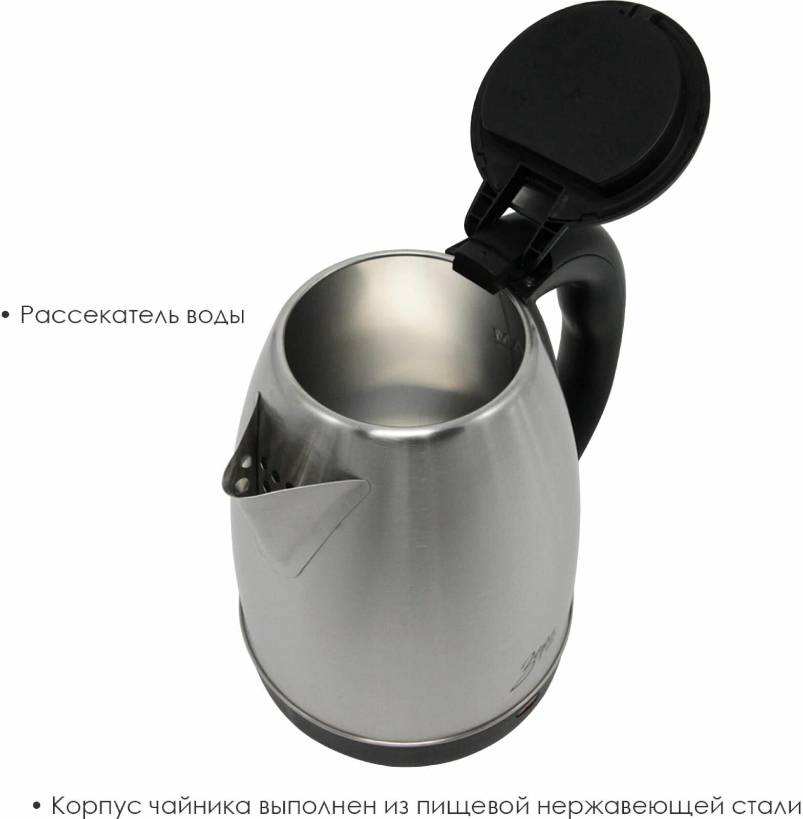 Электрический чайник Заря 256-02 1,8 л, автоотключение, из нержавеющей стали, поворот на 360, дисковый ТЭН, металлический, электрочайник, 1500 Вт 1 453 ₽