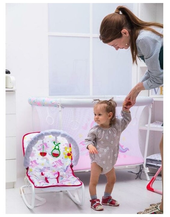 Шезлонг-качалка для новорождённых «Цветы», игровая дуга, съёмные игрушки (микс цветов, 1шт) информация: