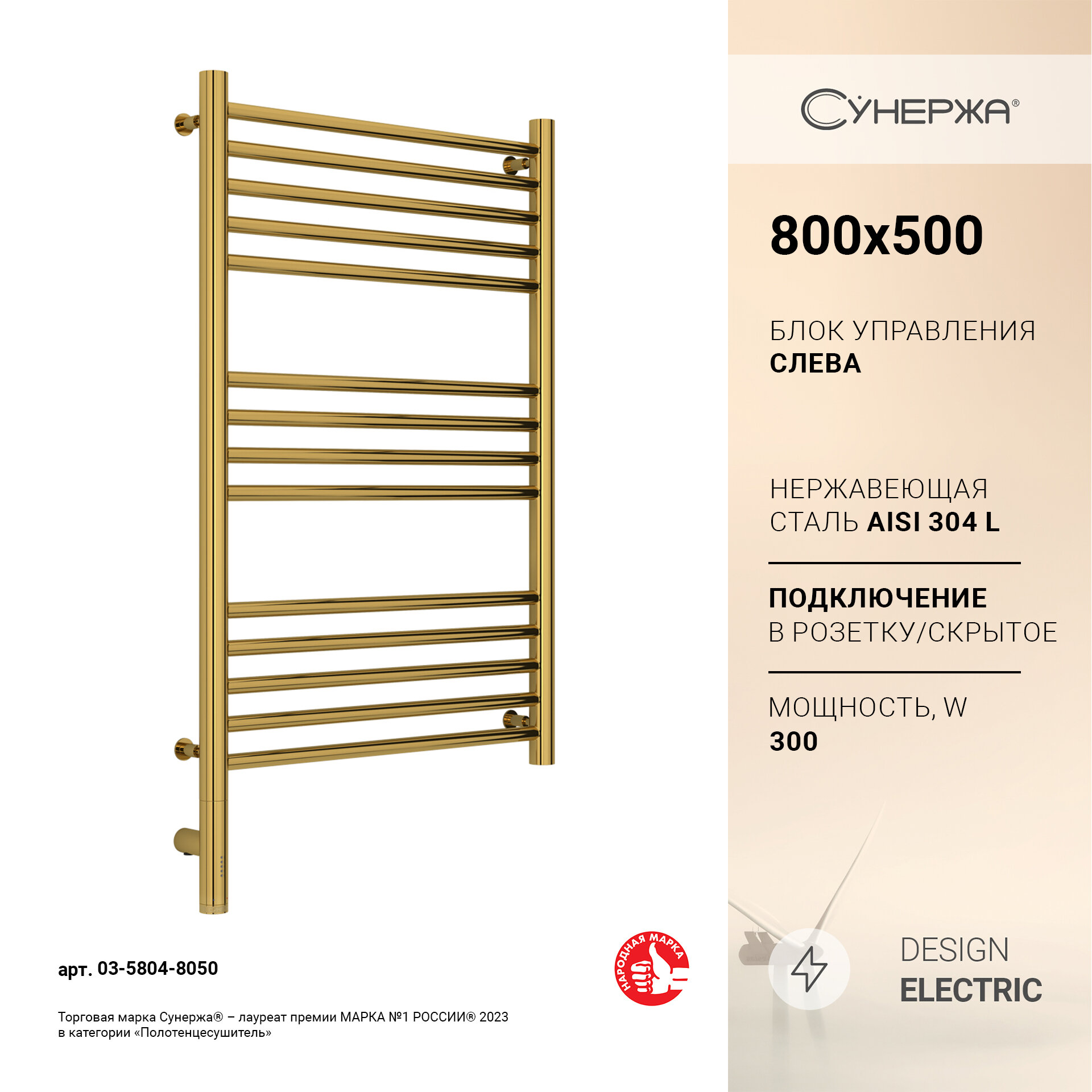 Полотенцесушитель электрический Сунержа Богема 3.0 прямая 80х50 золото, левый 51 500 ₽