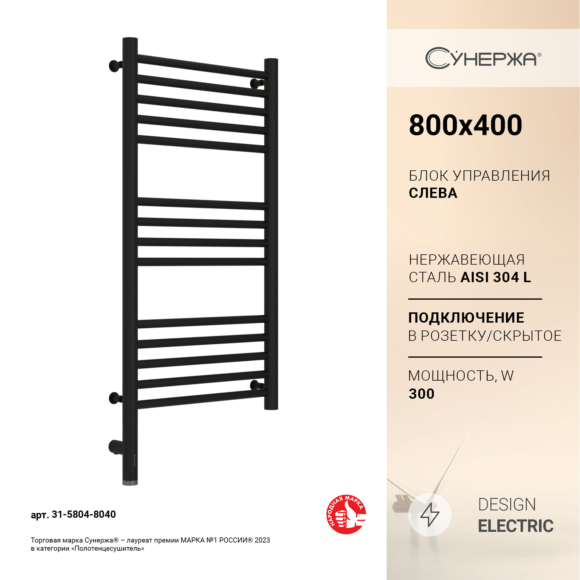 Полотенцесушитель электрический Сунержа Богема 3.0 прямая 800х400 МЭМ левый Матовый чёрный информация:
