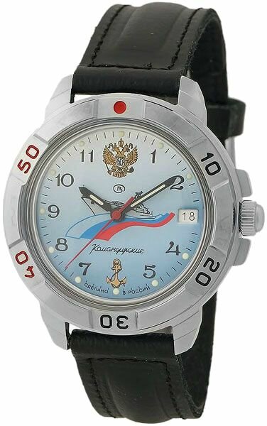 Мужские наручные часы Восток Командирские 53925Б-classic, натуральная кожа, черный