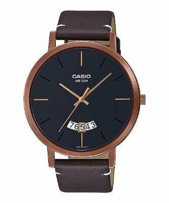 MTP-B100L-2E Casio наручные часы кварцевые WR50 (5 атм) мужские хром, коричневый отображение числа минеральное стекло