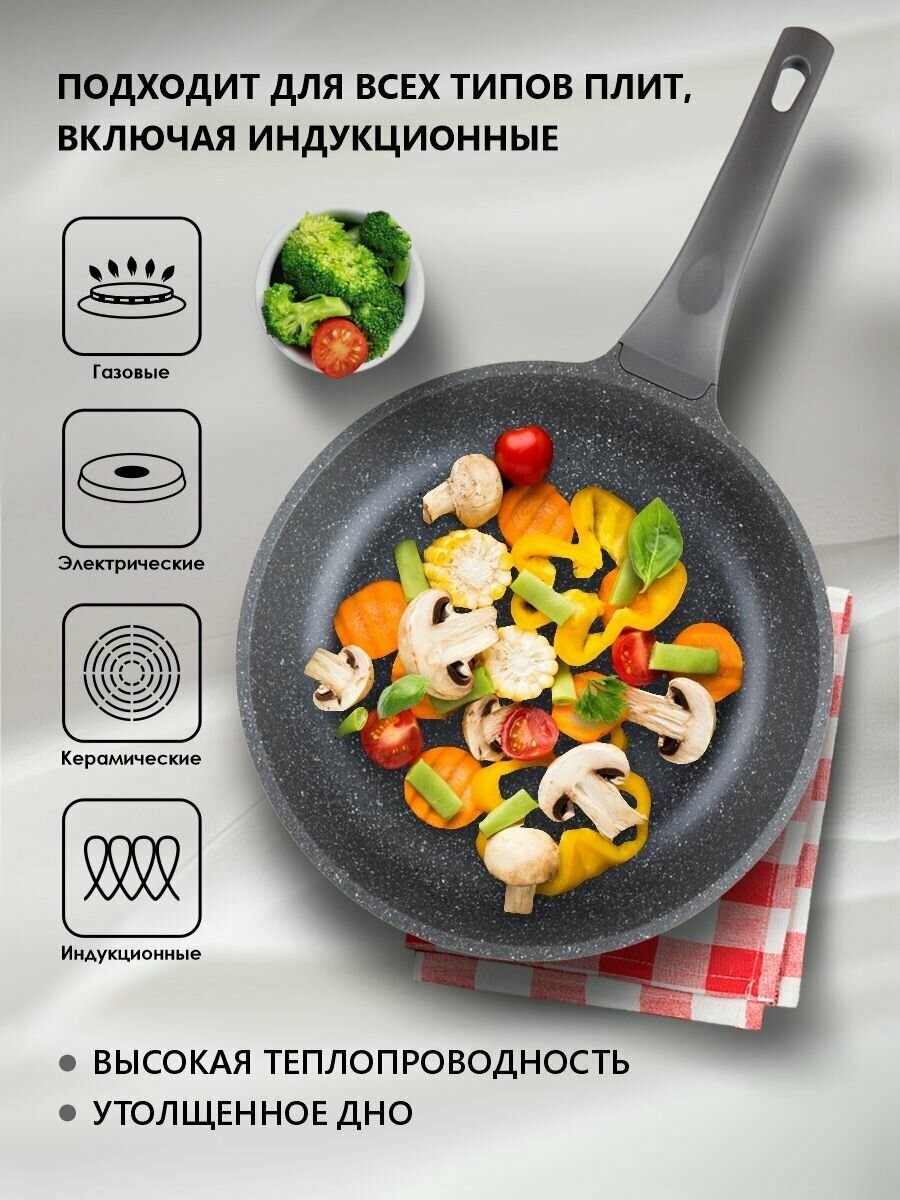 Сковорода литая ф 22х5.5 см, алюм., антиприг. покр., для индукц. плит, серия Grey, PERFECTO LINEA (55-220111) информация: