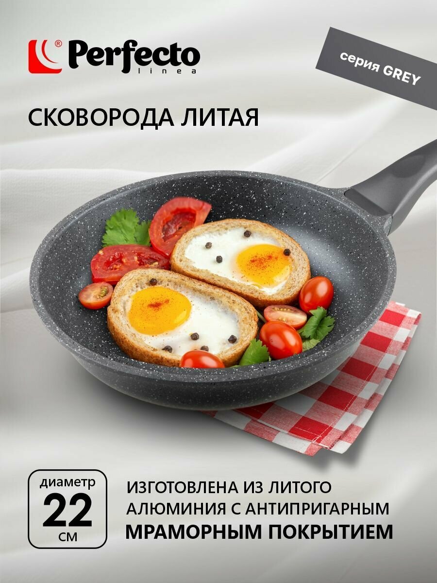 Отзывы на Сковорода литая ф 22х5.5 см, алюм., антиприг. покр., для индукц. плит, серия Grey, PERFECTO LINEA (55-220111)