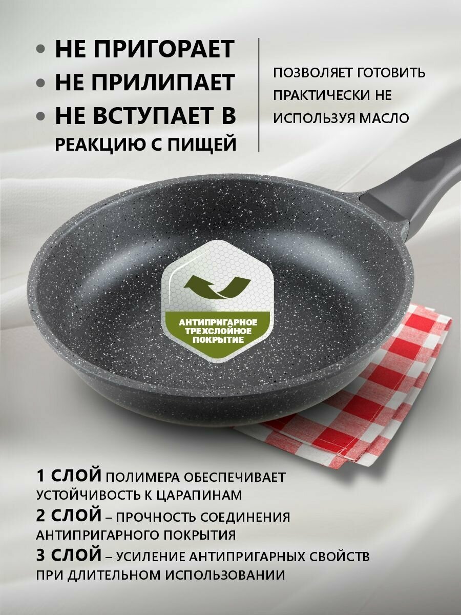 10 цен на Сковорода литая ф 22х5.5 см, алюм., антиприг. покр., для индукц. плит, серия Grey, PERFECTO LINEA (55-220111)