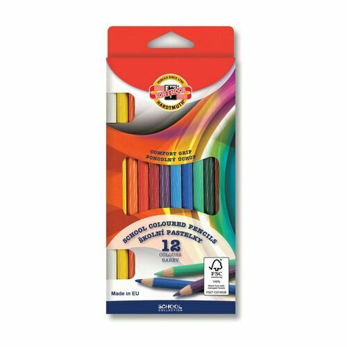 10 цен на Карандаши цветные KOH-I-NOOR 12 цветов, грифель 3,2 мм, рифленый корпус, заточенные (2112012001KS)