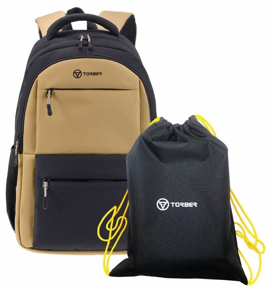 Отзывы на Рюкзак TORBER CLASS X, черно-бежевый, 45 x 30 x 18 см + Мешок для сменной обуви в подарок! TORBER MR-T2602-22-BEI-BLK-M