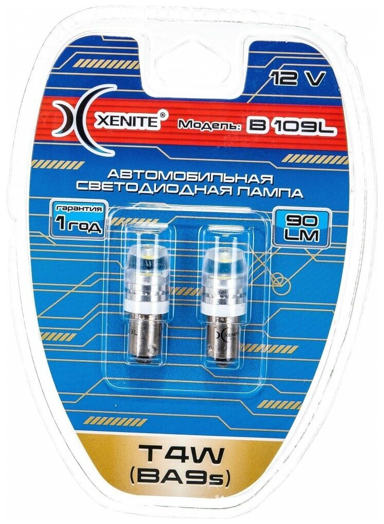 Светодиоды T4w (Ba9s) Xenite B109l (Яркость 90Lm) (Блистер 2 Шт.) Гарантия 1 Год Xenite арт. 1009354