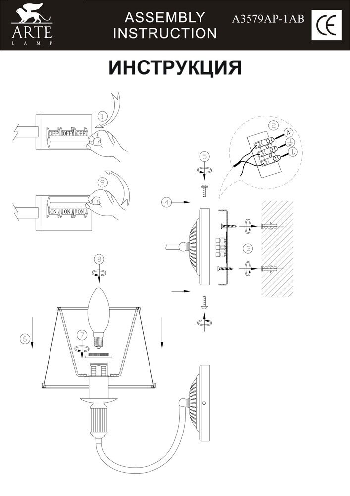 ARTE Lamp #ARTE LAMP A3579AP-1AB светильник настенный