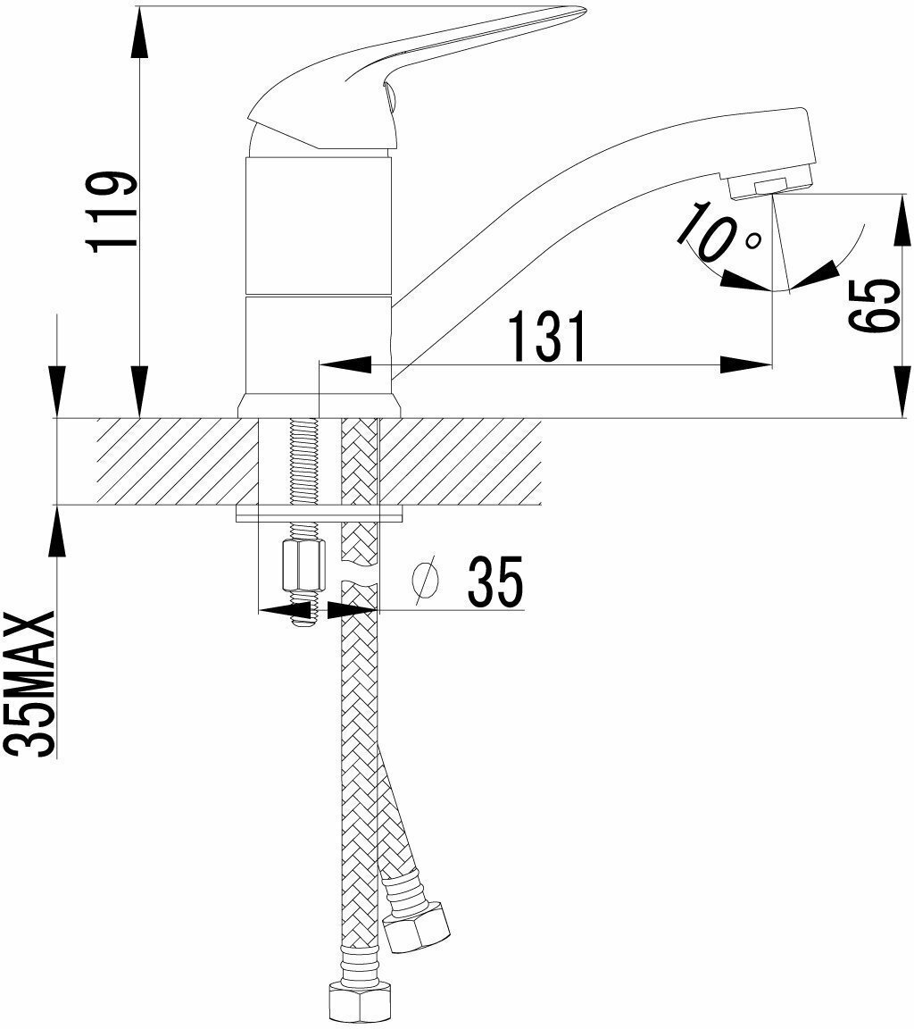 Смеситель для раковины с коротким поворотным изливом, гибкая подводка 35см, хром (Lemark LM1207C) информация:
