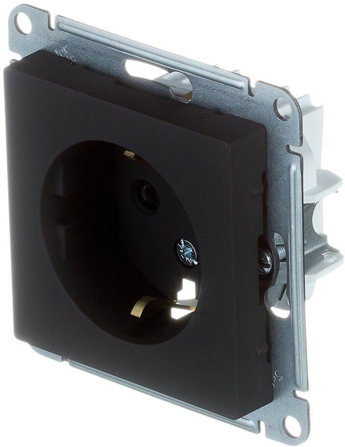 Розетка с заземлением со шторками, 16А, механизм (карбон) Atlas Design Systeme Electric, ATN001045