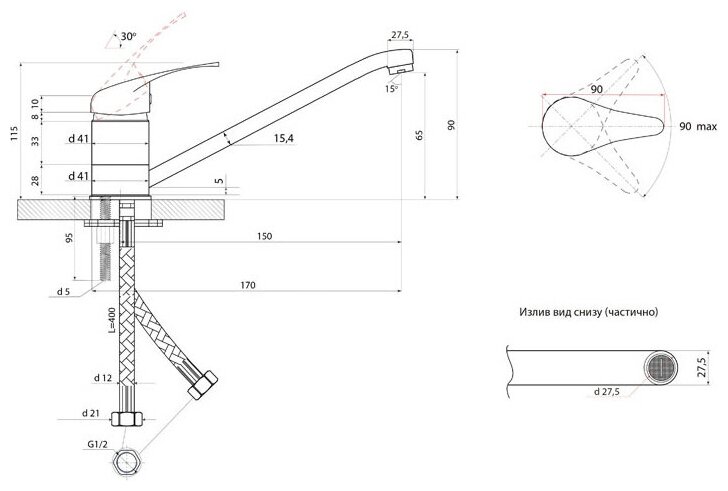 | Длина излива | 150 мм |