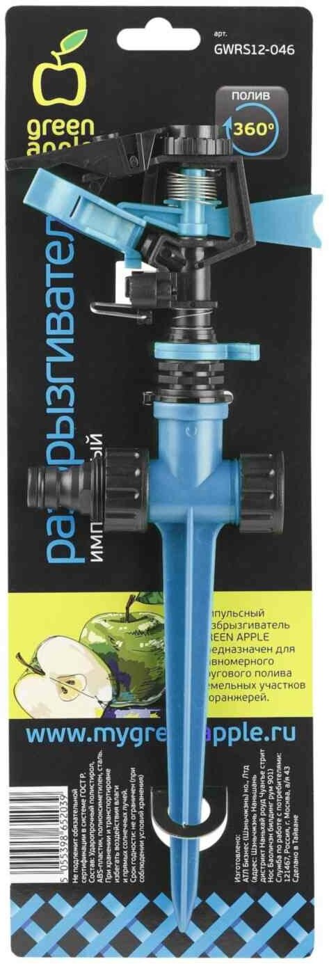 Green Apple GWRS12-046 GREEN APPLE Разбрызгиватель 360 град, импульсный, вращающийся, пластик
