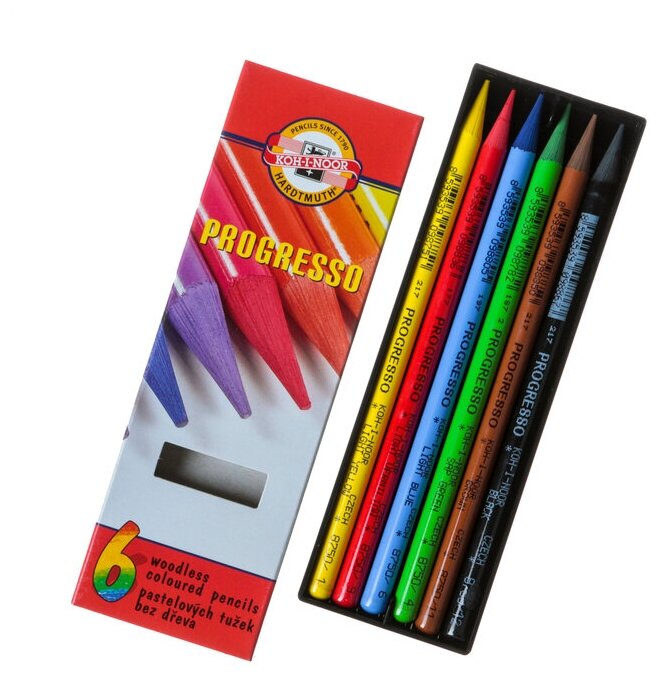 Отзывы на Карандаши художественные 6 цветов, Koh-I-Noor PROGRESSO 8755, цветные, цельнографитные, в картонной коробке