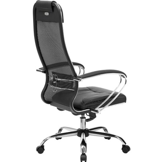 Кресло руководителя Метта "S" SU-1-BK, комплект 5, CH-2/CH, сетка Х2, черный, черная кожа