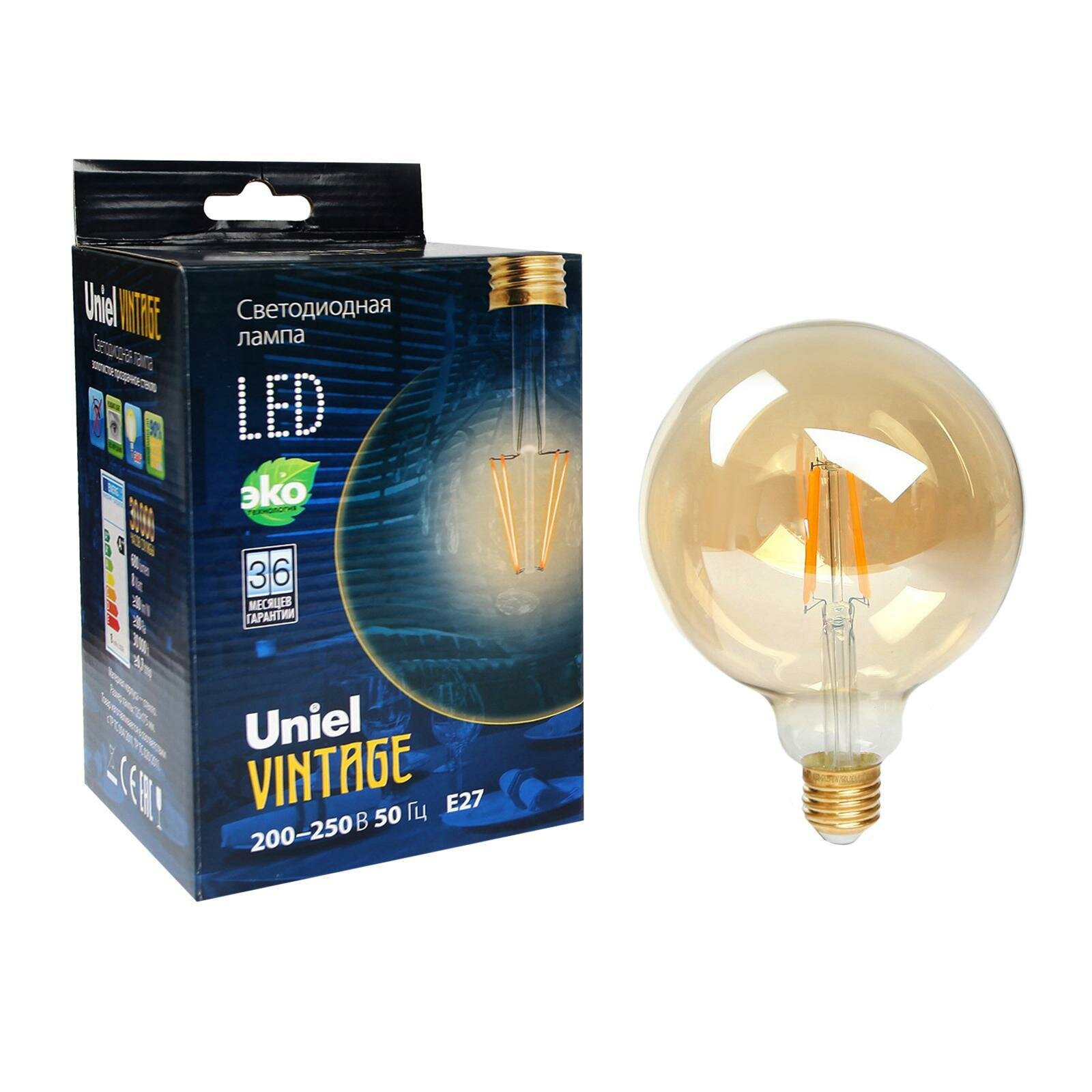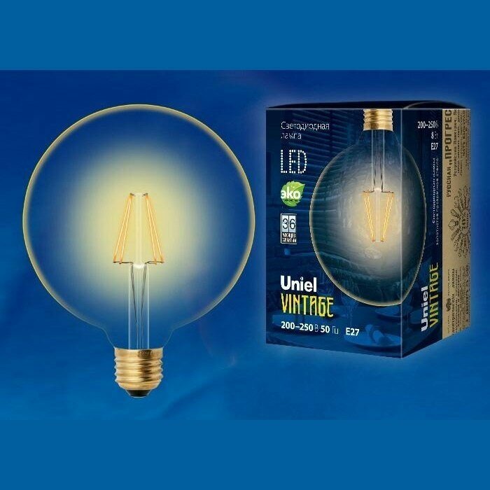 Отзывы на Лампа светодиодная Uniel Vintage, G125, 8 Вт, E27, 230 В, шар, золотистая колба