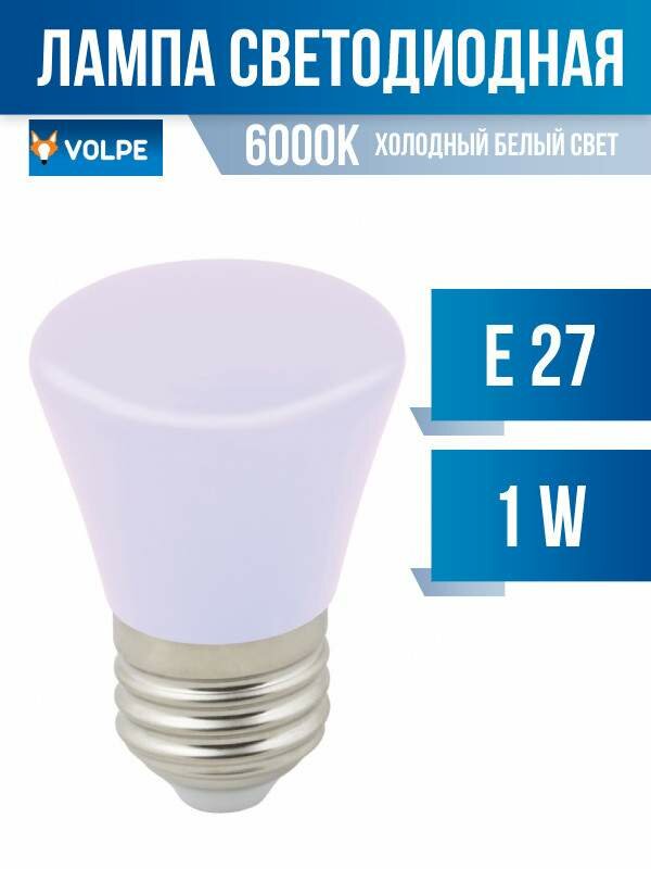 Лампа светодиодная Volpe E27 1W 6000K матовая LED-D45-1W/6000K/E27/FR/С BELL UL-00005804 информация: