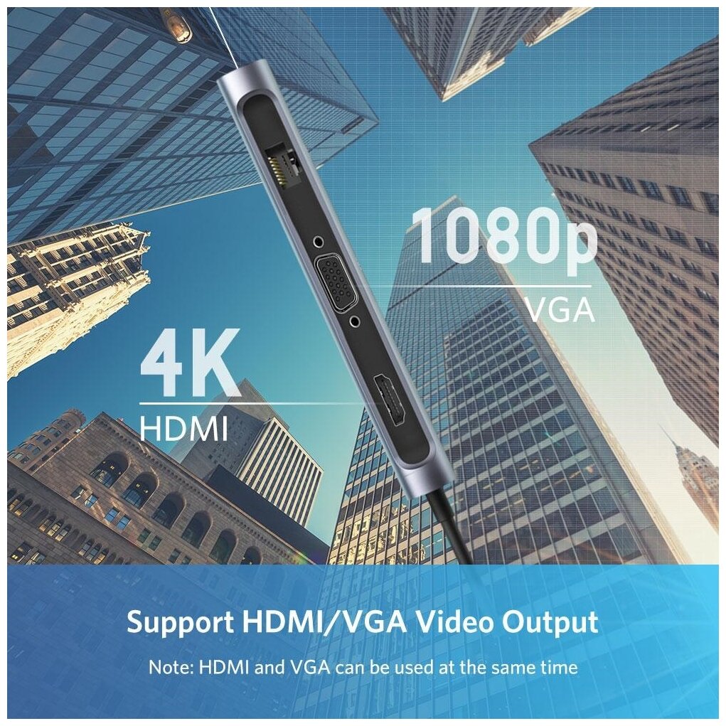 Отзывы на Хаб (разветвитель) Ugreen 9 в 1, 3 x USB 3.0, HDMI, VGA, RJ45 Gigabit, TF/SD, PD