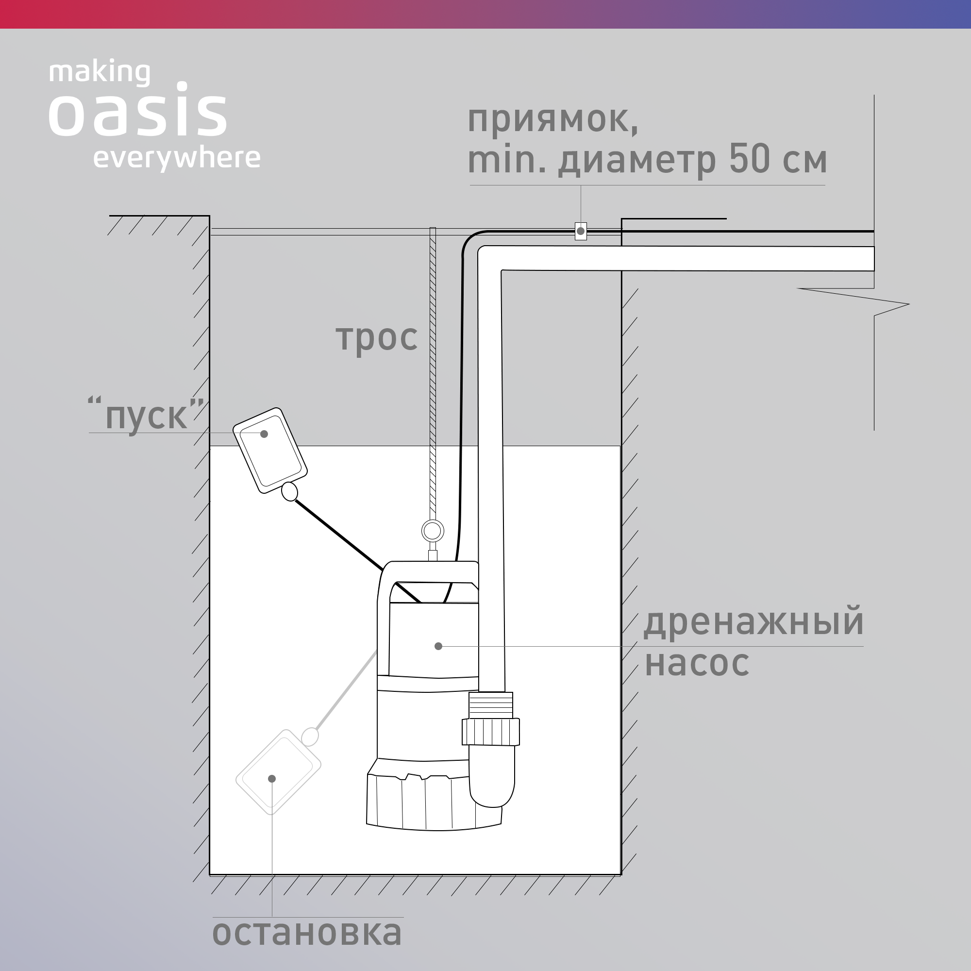 Насос дренажный Oasis DN 170/9, 400 Вт, напор 9 м, 170 л/мин