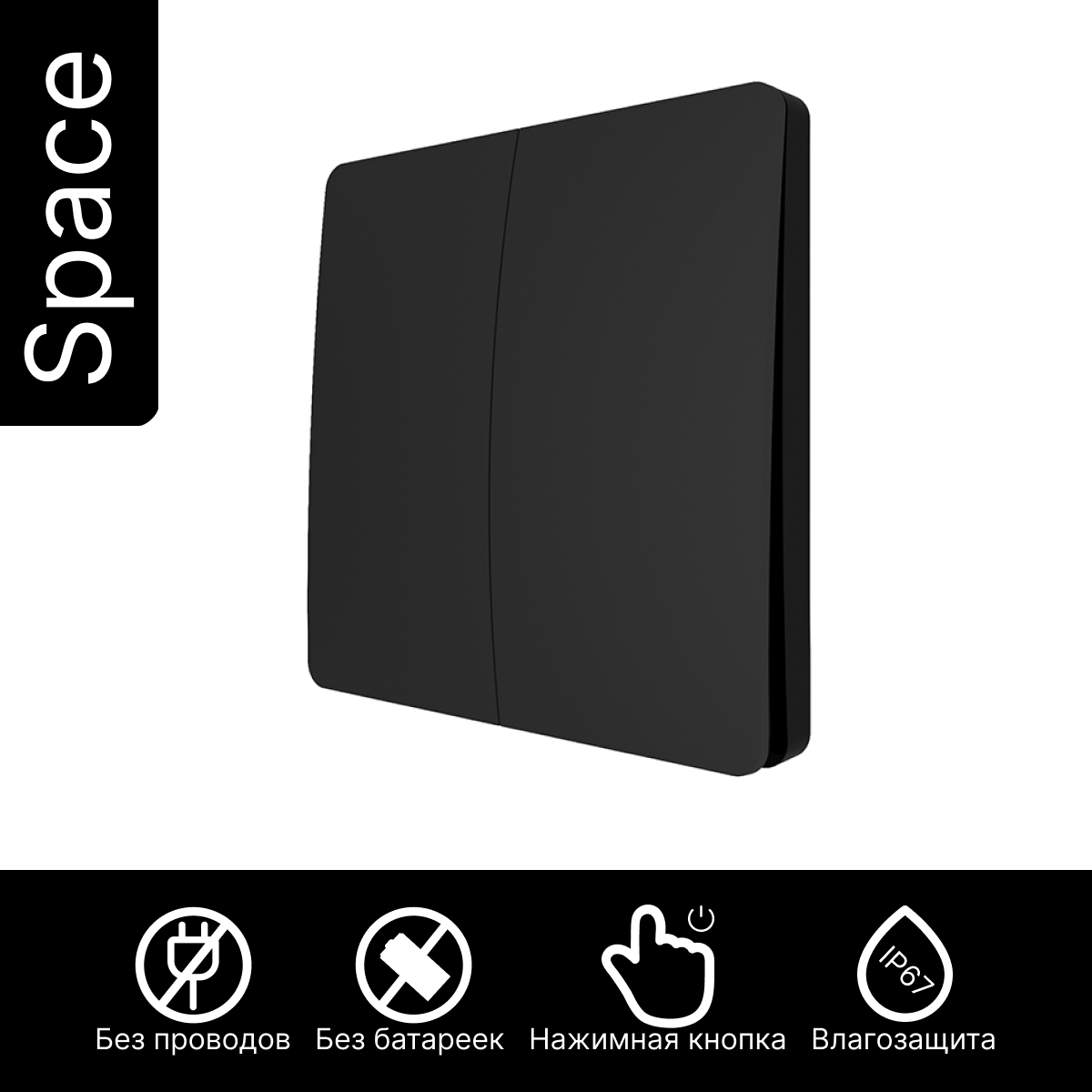 Умный беспроводной выключатель GRITT Space 2кл. черный комплект: 1 выкл. IP67, 2 реле 1000Вт 433 + WiFi с управлением со смартфона, S181220BLWF информация: