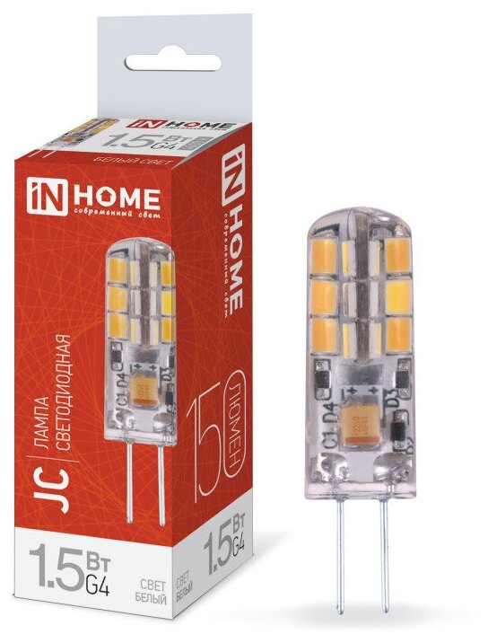 Лампа светодиодная LED-JC 1.5Вт 12В 4000К нейтр. бел. G4 150лм 4690612035963 IN HOME (5шт.) информация: