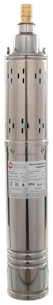 Глубинный насос QUATTRO ELEMENTI ELICA 600(600 Вт, 3600 л/ч, для чистой, 50 м, 9.4 кг, нерж.корпус, провод 10м) информация: