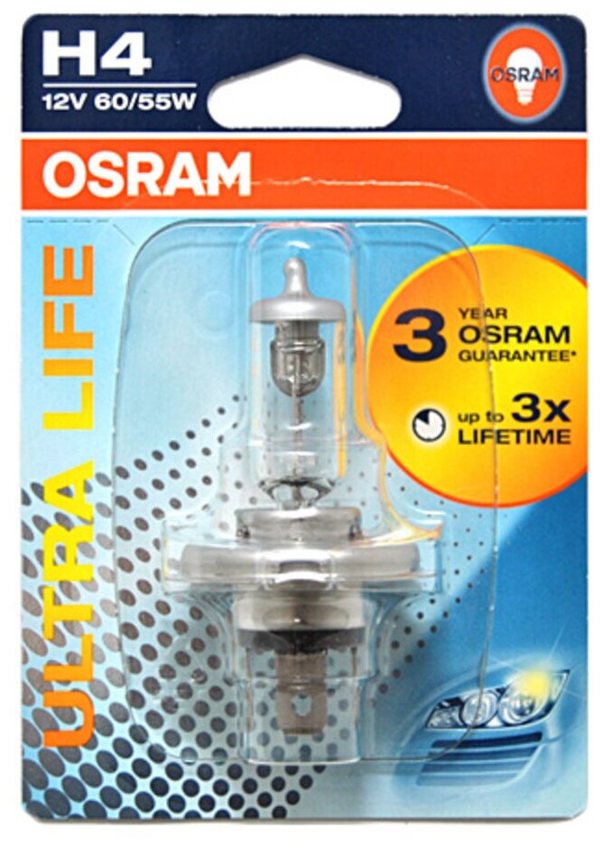 OSRAM 64193ULT-01B H4 12V (60/55W) Лампа ULTRA LIFE [увелич. в 3 раза срок службы] 1 шт. в блистере