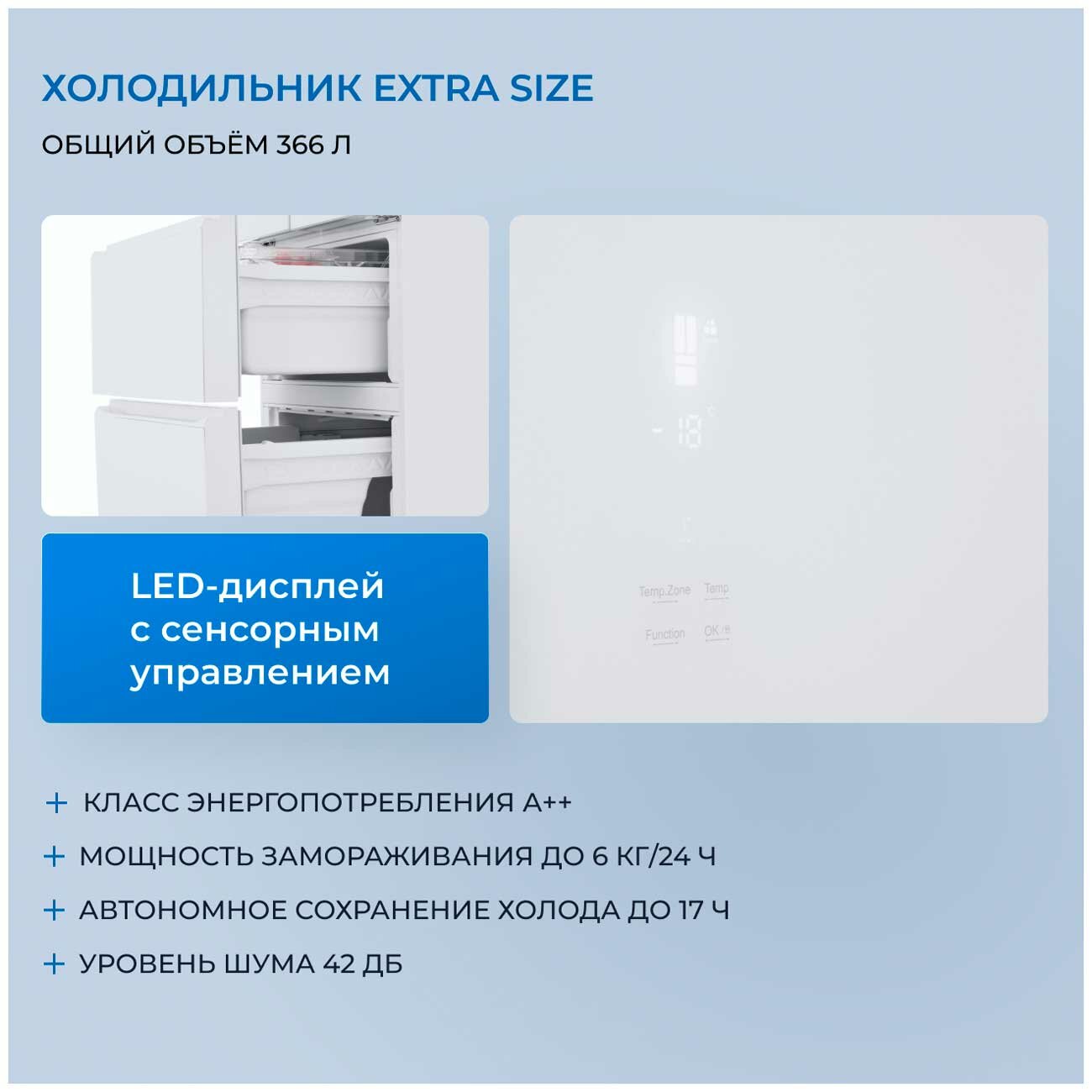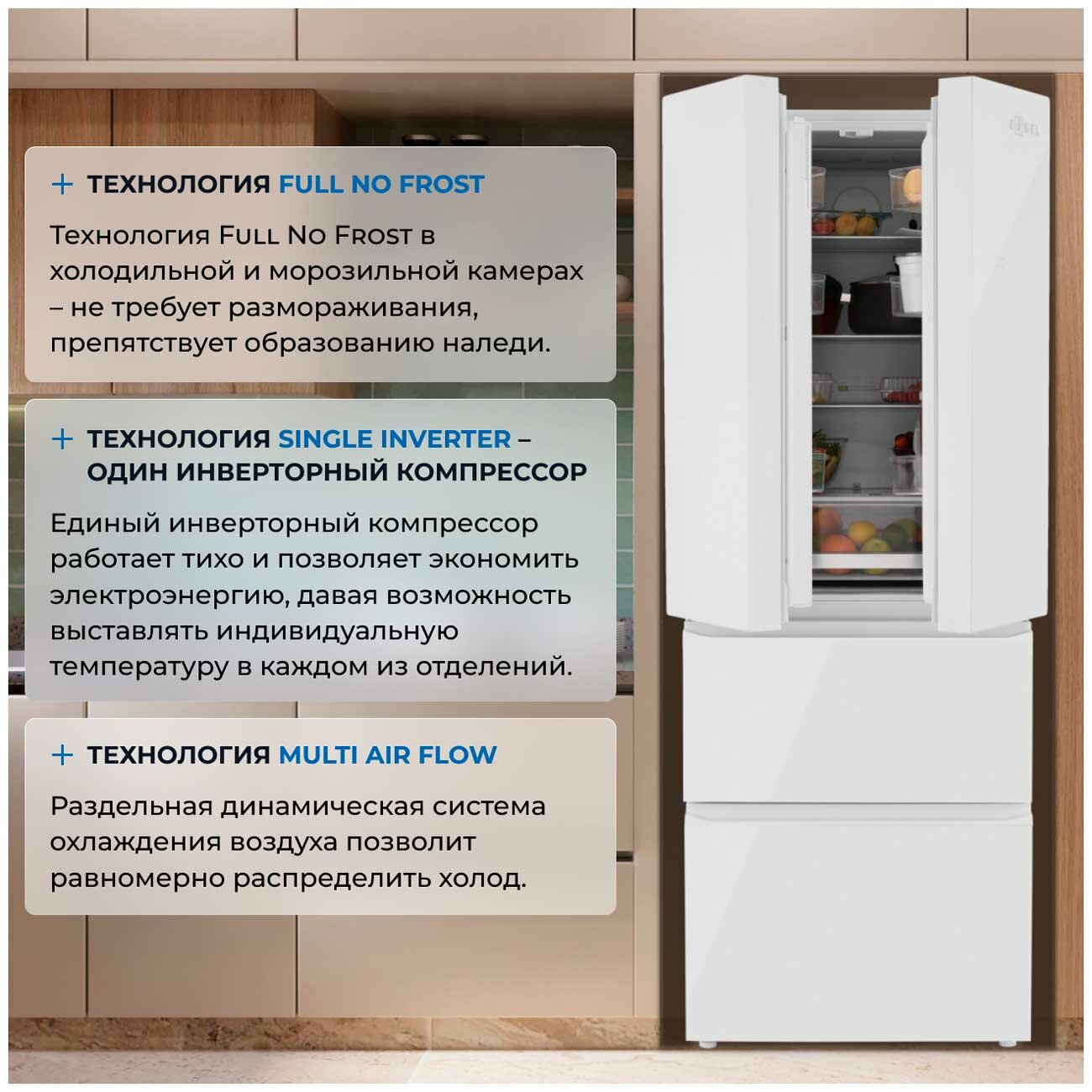 Многокамерный холодильник Zugel ZRFD361W, белое стекло информация: