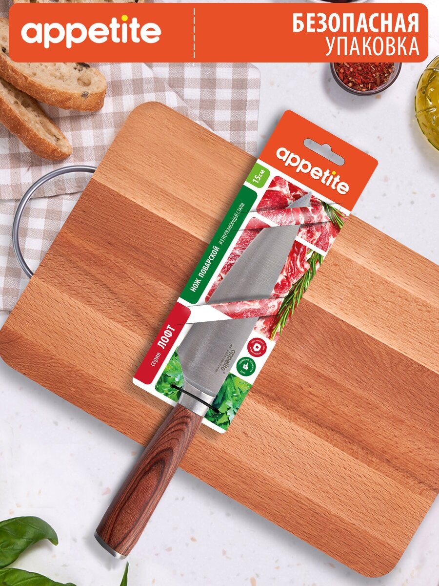 Нож из нержавеющей стали Эффект поварской 15см серый ТМ Appetite