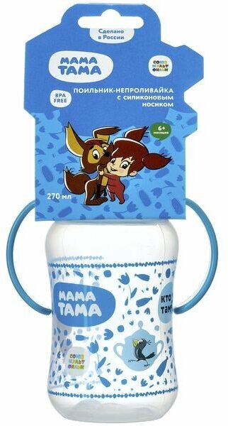 Поильник-непроливайка мама тама с силиконовым носиком 6мес.+, 270 мл., цвет:синий
