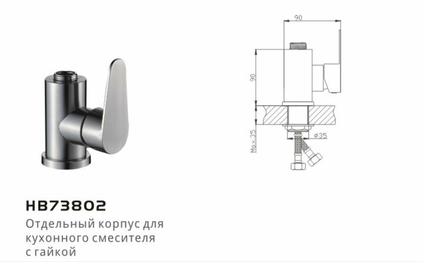 Смеситель для кухни Haiba HB73802 без излива, нержавеющая сталь информация: