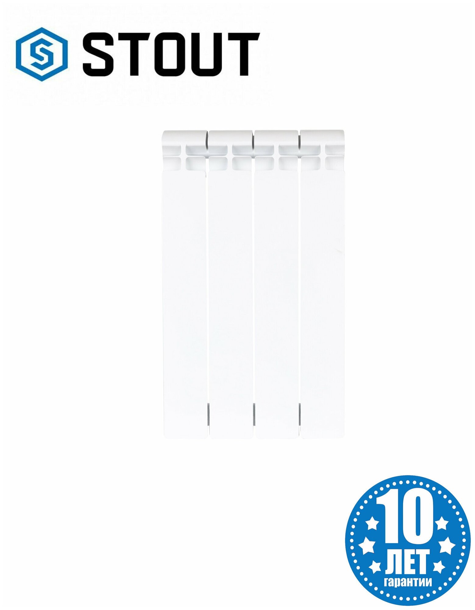 Радиатор биметаллический TITAN 500 4 секции, боковое подключение, белый RAL 9016 STOUT (SRB-3310-050004)