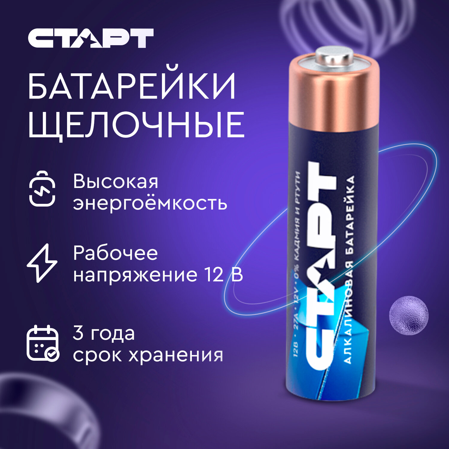 Батарейка старт (27А, 5 шт.) (4610116203880) 470 ₽
