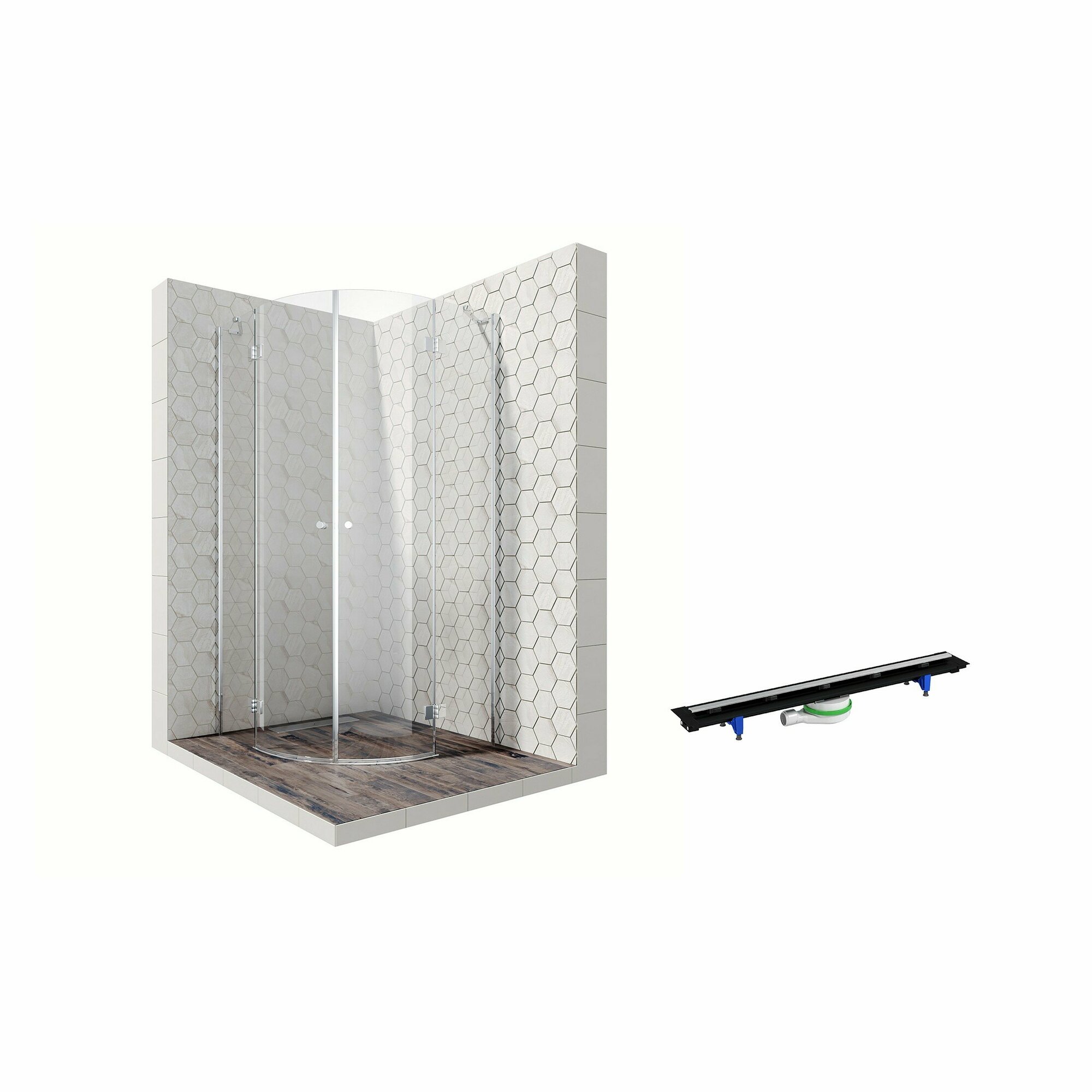 Комплект душевого ограждения (перегородка) со свободным входом с линейным трапом Ambassador Walk-in 15031104-ST4, с EasyClean, 120 см