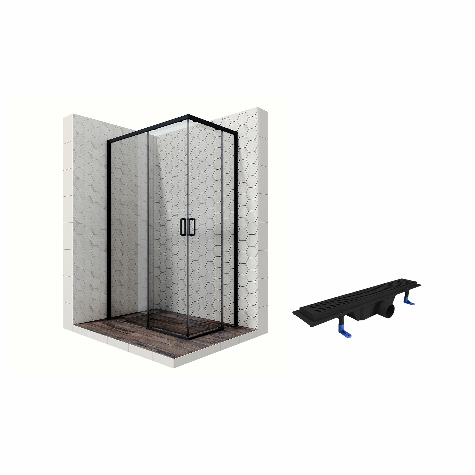 Душевой уголок 120х80 с трапом и раздвижными дверями Ambassador Queen Black 11011205L-ST4: левостороннее душевое ограждение 6 мм, профиль черный информация: